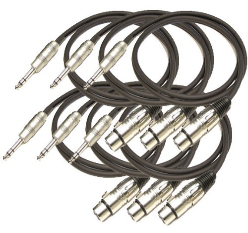 6 PACK 6' FT FEMALE XLR TO 1/4" TRS BALANCED PATCH CABLE CORDS 2M MP444 Review